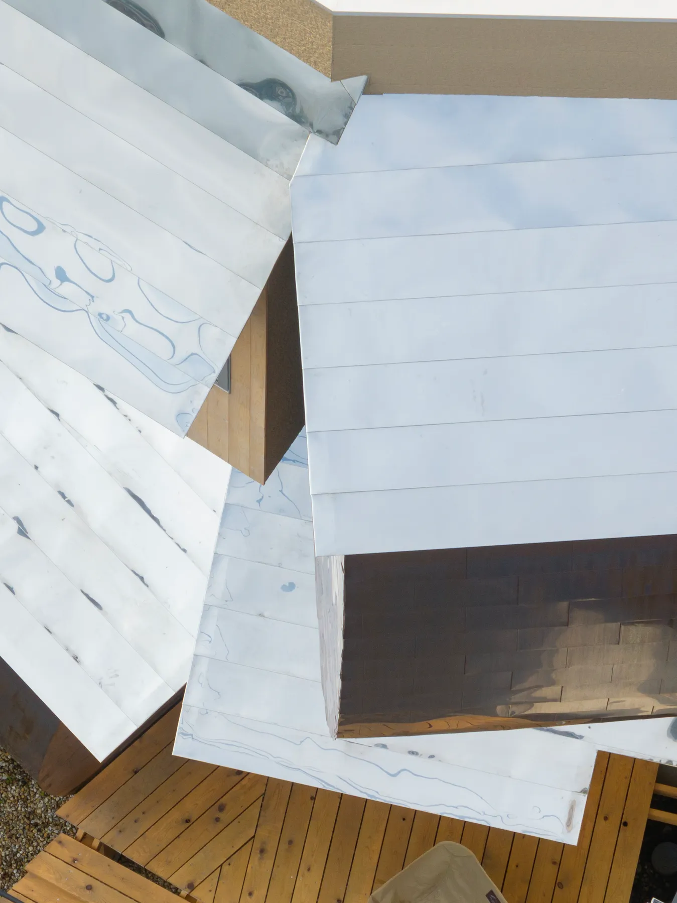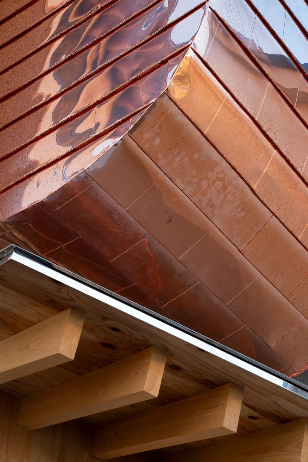By setting the building back from the street, we created a small front garden and an outdoor terrace that extend the planting of the greenway. Using copper and wood—materials that age gracefully—we made a home that celebrates the passage of time. We also hope it becomes a colorful backdrop for people strolling along this well-loved path.