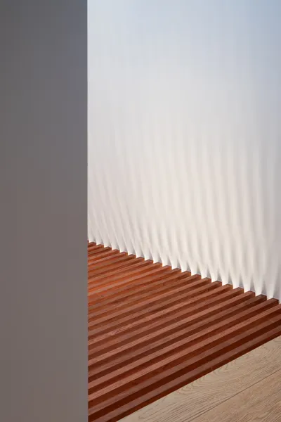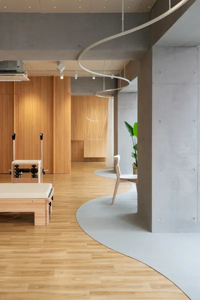 NewAns ShinjukuNewAns西新宿UseStudioArea85.89 m²CompletionApril 2024LocationTokyoDesignShin AokiConstructionMYARDSPhotoShota Hiyoshi用途トレーニングスタジオ面積85.89 m²竣工2024年4月場所東京設計青木真施工マイヤーズ写真日吉祥太<p>We designed NewAns, a pilates training studio in Nishi-Shinjuku. Our layout maximizes the use of space for pilates training, strategically placing solid wooden walls in a staggered formation and soft, curved curtains. This design aims to create an amorphous space where the body can relax. We positioned aerobic exercise equipment in areas visible from the street, turning the act of exercising into a part of the city's landscape.</p><p>ピラティス・トレーニングスタジオのNewAns西新宿店を設計した。</p><p>雁行させたソリッドな木の壁と、曲線のやわらかいカーテンに挟まれたエリアをピラティス・トレーニング空間として最大限確保し、身体がリラックスできる不定形な空間を意図した。</p><p>街から良く見える位置に有酸素運動器具を配置して、運動する人自体が街の景色となることを考えた。</p>[]Desty Ginza New 2nd Store