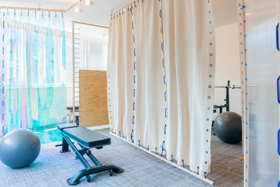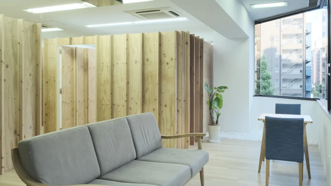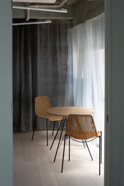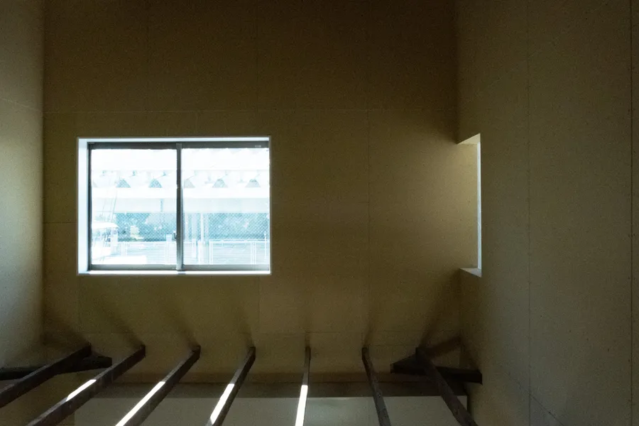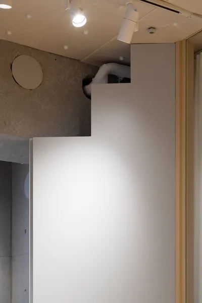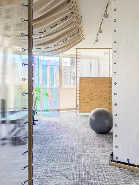 Desty Ginza New 2nd StoreDesty 銀座新2号店UseStudioArea55.44 m²CompletionJuly 2023LocationTokyoDesign & ConstructionShin Aoki, Toshiki NishimuraReal estate agencyRyota YamagishiPhotoHiroto TabataConstruction assistantMakiko Fujie, Yuichiro Takei, Remi Tsuchiyama, Moeko Aoki用途トレーニングスタジオ面積55.44 m²竣工2023年7月場所東京設計・施工青木真・西村俊貴不動産仲介創造系不動産 山岸亮太写真田畑洋人施工協力藤江真紀子・武井雄一朗・土山怜美・青木萌子<p>We handled the design and construction for the relocation of Desty Ginza 2nd Store due to the expiration of its tenant lease. Over two years, the service offerings evolved, necessitating a shift from highly private individual rooms to open, flexible spaces. To meet this demand, we designed various movable walls, including partitions made of canvas that draw inspiration from traditional Japanese shutters. We also devised simple construction methods that our team could manage, standardizing on techniques that involve merely drilling holes and tying with rope. This approach allowed us to soften even the hardest materials, creating a cozy space that embodies the feel of handcrafted comfort.</p><p>Desty銀座2号店のテナント契約期間満了に伴う移転のための設計・施工をおこなった。2年間でサービスの内容がアップデートされ、プライベート性の高い個室から、オープンで可変性のある空間が求められたため、蔀戸を参照した帆布の仕切りをはじめとして、様々な動かせる壁をデザインした。</p><p>自分たちで施工できるように作り方を工夫して、穴をあけて紐で結ぶという簡単な手順で統一することで、固い素材も含め“やわらかい面”に還元し手仕事を感じる居心地の良い空間を目指した。</p>[]Yagisawa Showcase