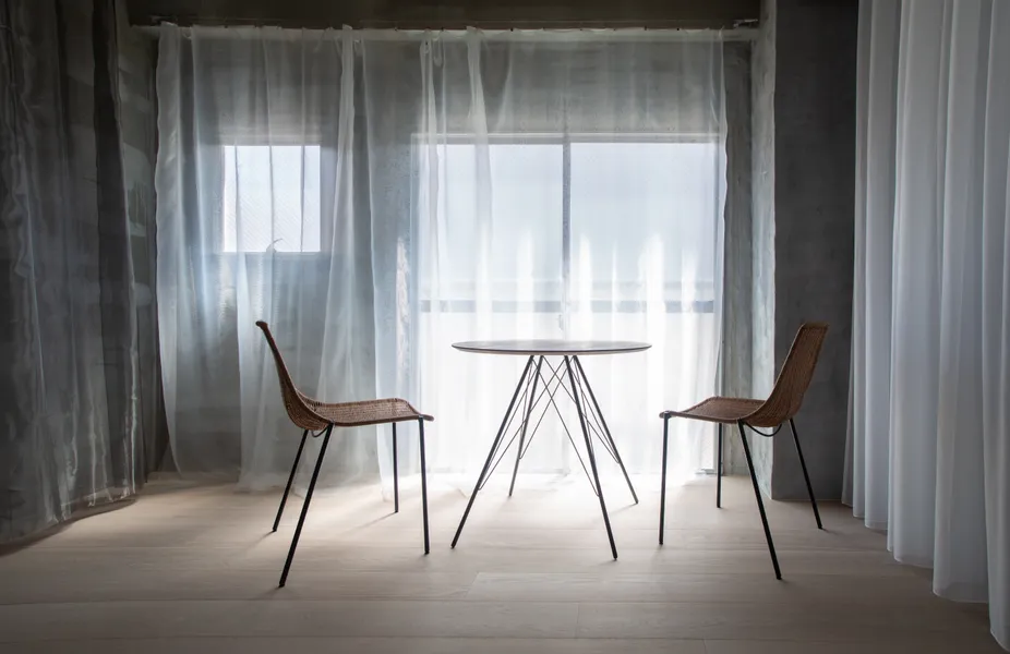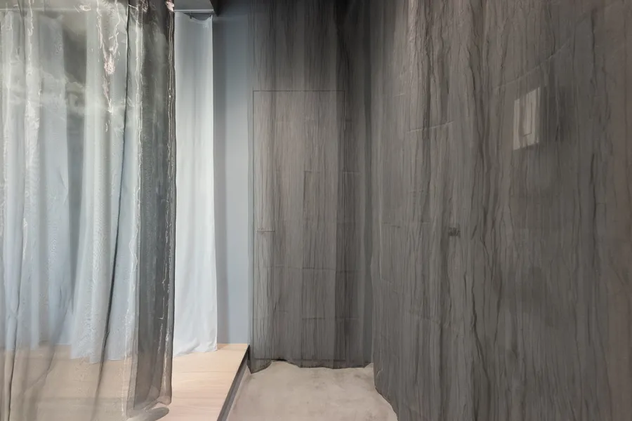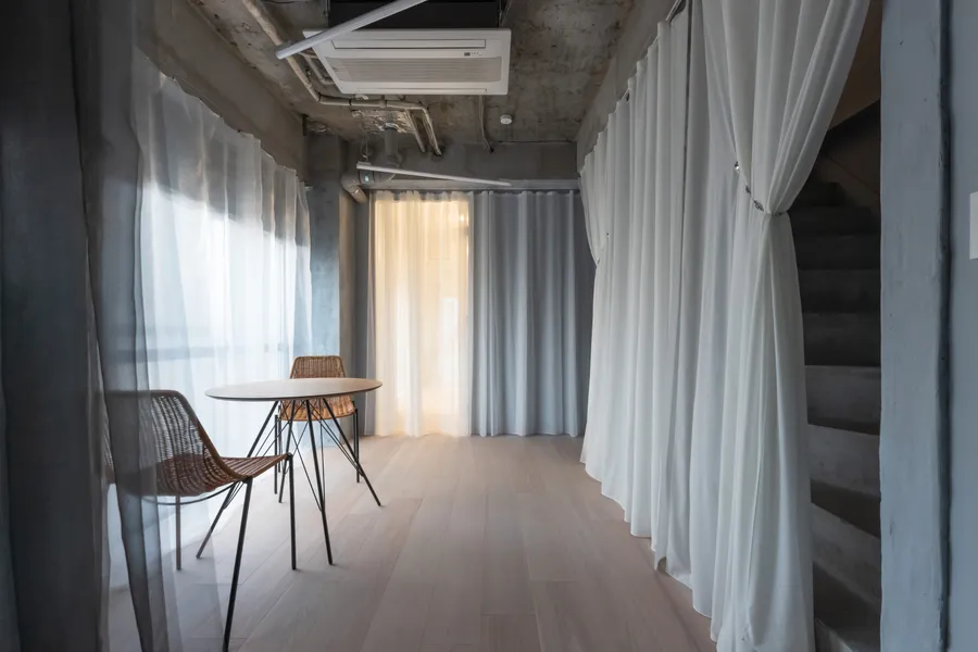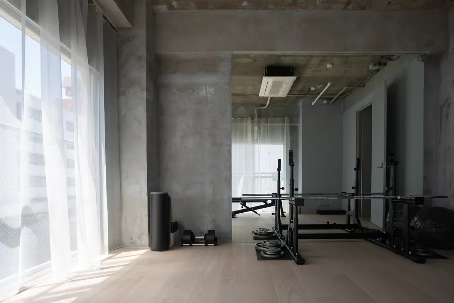Desty NakameguroDesty 中目黒UseStudioArea75.95 m²CompletionMay 2022LocationTokyoDesignShin AokiConstructionMYARDSReal estate agencyRyota YamagishiPhotoJustin Hsu, Shunsuke Shinomiya, Yotaro Sakamoto, Hiroto Tabata用途トレーニングスタジオ面積75.95 m²竣工2022年5月場所東京設計青木 真施工マイヤーズ不動産仲介創造系不動産 山岸亮太写真徐佳凝・四宮駿介・坂本陽太郎・田畑洋人<p>Desty Nakameguro</p><p>We designed the Desty Nakameguro, a personal gym exclusively for women. Set within a decades-old tenant building, the stark exposed concrete is contrasted with light, translucent fabrics to create a bright and tranquil space. The design aims to evoke a fabric-like experience, with ultra-thin materials fluttering in response to movement, encouraging a heightened awareness of one’s physicality through the gentle touch of soft materials.</p><p>Desty 中目黒<br><br>女性専門のパーソナルジムであるDestyの中目黒店を設計した。築数十年のテナントビルの荒々しい剝き出しのコンクリートに対比して、浮遊感と透光性のあるファブリックで部屋を設え、明るく落ち着いた空間を作り出した。布に近い体験や、極薄の布が体の動きによってそよぐ状況を生み、柔らかい素材に触れることを通して自らの身体性に意識が向くような体験を意図した。<br></p>[]Desty Ginza 2nd Store