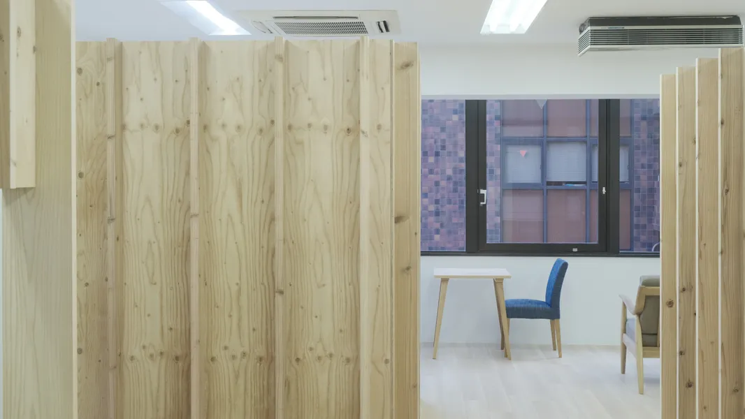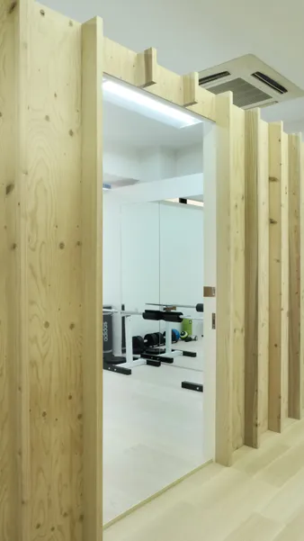 Desty Ginza 2nd StoreDesty 銀座2号店UseStudioArea106.94 m²CompletionJuly 2021LocationTokyoDesignShin AokiConstructionMYARDSReal estate agencyRyota YamagishiPhotoShunsuke Shinomiya用途トレーニングスタジオ面積106.94 m²竣工2021年7月場所東京チーム青木 真施工株式会社マイヤーズ不動産仲介創造系不動産 山岸亮太写真四宮駿介<p>Desty Ginza 2nd Store<br><br>We designed Desty Ginza 2nd Store, a personal gym exclusively for women. After conducting detailed interviews about the training requirements, we realized the need for private rooms measuring 2.6m by 2.6m. These box-like spaces were arranged throughout the facility, interspersed with versatile alley-like spaces of various widths and depths, used for group classes and staff breaks. The design primarily uses wood to create a relaxing environment conducive to focusing on one's physical wellness.</p><p>Desty 銀座2号店<br><br>女性専門のパーソナルジムであるDesty の銀座2号店を設計した。詳細なトレーニング内容のヒアリングをおこない、2.6m×2.6mの個室が必要であるとわかったため、そのボックス状の空間を分散配置し、その間に様々な幅や奥行きを持ったグループレッスンやスタッフの休憩等に使える多目的な路地状空間をデザインした。木をメインに用いることでリラックスしつつ自身の身体に向きあう場所を目指した。</p>[]